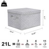 - Boasting a generous 21-liter capacity and measuring 14.8L x 10.4W x 8.7H, each box is perfect for storing clothes, towels, sheets, books, and other household essentials.