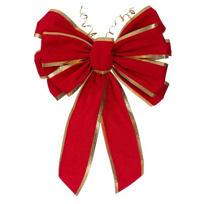 Large Christmas tree bow topper, 13 inches in diameter and 40 inches in length, handmade of polyester yarn. Long ribbon tails can be cut as needed, perfect for Christmas tree decoration.