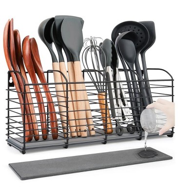 Aoibox Large Kitchen Utensil Holder Organizer with Diatomaceous Earth Base, Matte Black, 4 Compartments for Countertop Storage