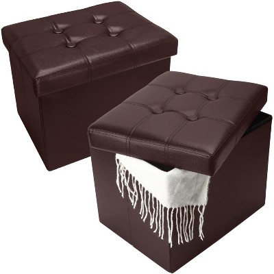 Aoibox Leather Storage Ottoman Foot Rest with Handles, Foldable Footstool for Living Room, Dorm, Entryway, Collapsible Bench Seat Organizer in Orange