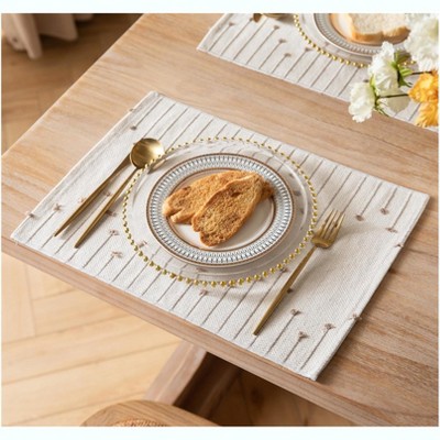 Aoibox Quilted Round Placemats Set of 6, Washable Cotton Fabric with Microfiber Filling for Kitchen Table, Flax Design