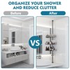 - Adjustable shower organizer with poles adjustable from 39 to 125 inches. Basket positions are adjustable and fastened by sleeve nut, more flexible than rubber bands.