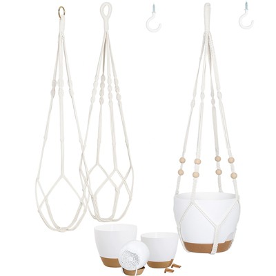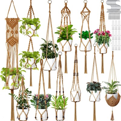 Aoibox Set of 4 Indoor Hanging Planters with Hooks, Decorative Flower Pot Holders for Home Decor, Brown