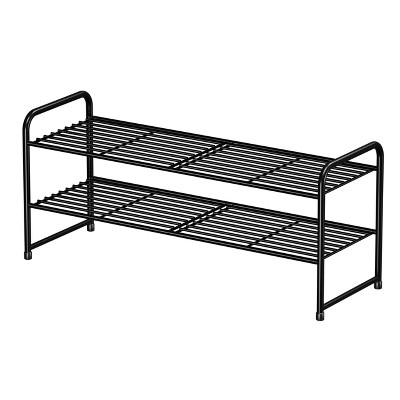 Aoibox Sturdy Metal Shoe Rack for Entryway, Stackable & Detachable Shoe Organizer, 27.6" x 11.8" x 22.6", Black