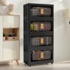 - Each storage box has a foldable design,so if they are not needed they can be folded up and stored in the corner of the cabinet.Doesn't take up more space.And snaps at the top of each tier to lock the locker securely in place.There are four swivel wheels on the bottom for easy mobility.