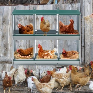 - 【Protect Your Eggs】Nesting box chassis has a slight tilt design which Provide individual nests for hens with a forward incline to roll eggs forward for easy collection without breakage.We recommend placing some padding under the lid of the egg collection box to further protect the eggs from collisions.