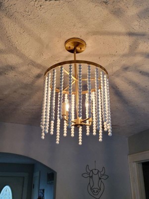 [This review was collected as part of a promotion.] This is a gorgeous accent to any room. The brass accent pieces paired with the wood beads looks so good. We have one room that has gold accents and it goes perfectly in there. It’s easy to install and has the perfect amount of brightness.