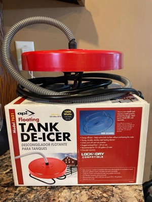 [This review was collected as part of a promotion.] This floating tank De-icer is great for the winter weather. It’s energy efficient and will not sink. Where we you put it, the water will not overheat. It’s strong and durable. I can’t wait to use it again next year.