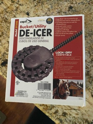 [This review was collected as part of a promotion.] The API Bucket/Utility De-Icer will be a total game-change for us during the cold months! With 500 watts of power,it will keep our water container from freezing-even in below-freezing temps. Its perfect for our backyard chickens,and ideal for any container up to 60 gallons. I love how easy it will be to use- just plug it in, drop it into the container, and ley it do its job. The built-in thermostat helps regulate temperature efficiently,and the 6-foot cord gives you plenty of flexibility to reach outlets safely. It hearts just enough to keep water accessible without overheating or damaging plastic containers. The de-icer gives me peace of mind knowing my chickens will have fresh,unfrozen water available around the clock. It's reliable,sturdy,and well worth it!