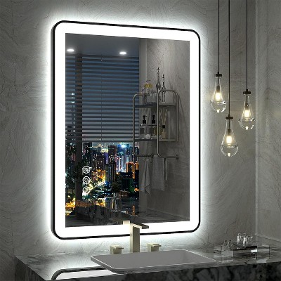 Apmir 24 in. W x 32 in. H High-Strength Tempered Glass and Aluminum Alloy Framed French Cleat Mounted Wall Decor Bathroom Mirror in Dark Brown Wood