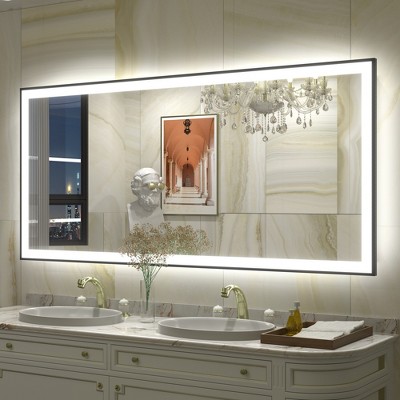 Apmir 60 in. W x 28 in. H Super Bright Independent Controlled Front & Back LED Lighted Anti-Fog Aluminum Alloy Framed Tempered Glass Bathroom Mirror
