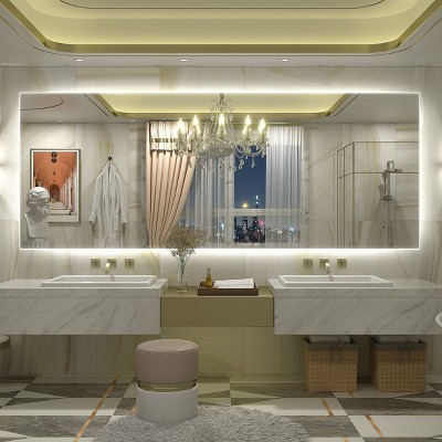 Apmir 84 in. W x 32 in. H Super Bright Independent Controlled Front & Back LED Lighted Anti-Fog Aluminum Alloy Framed Tempered Glass Bathroom Mirror