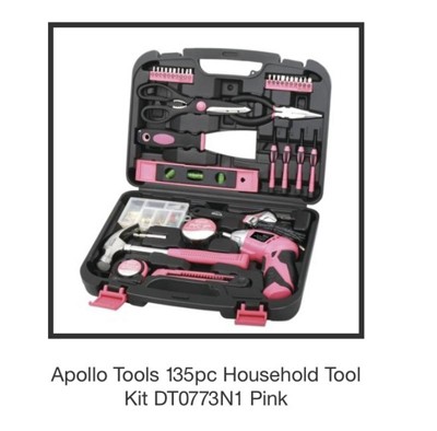 Apollo Tools 135pc Household Tool Kit DT0773N1 Pink: Women's Tool Set with Chrome-Plated Hardware & Carrying Case