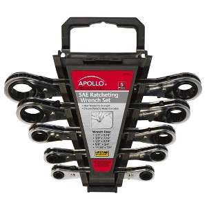 Apollo Tools 5pc DT1213 Metric Ratcheting Wrench Set: Steel, Dark Silver, Socket & Box End, Lifetime Warranty
