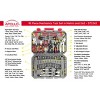 Contains: Wire Brush, Eight Metric Hex Keys: 1.5mm, 2mm, 2.5mm, 3mm, 4mm, 5mm, 5.5mm, 6mm; Ratcheting Bit Driver, Ten 1"" Bits: 1/8"", 5/32"", 3/16"", 1/4""; PH1, PH2, PH3; PZ1, PZ2, PZ3; Ten 1"" Bits: T10, T15, T20, T25, T27, T30; 1/8"", 5/32"", 3/16"", 1/4""; Slotted 3.0mm Precision Screwdriver, Phillips #1 Precision Screwdriver, 6"" Long Nose Pliers, 6"" Diagonal Pliers, 8"" Adjustable Wrench, 6"" Adjustable Wrench, Eight SAE Hex Keys: 1/16"", 5/64"", 3/32"", 1/8"", 5/32"", 3/16"", 7/32"", 1/4""; Twenty 1/4“ Drive Sockets: 5/32"", 3/16"", 7/32"",1/4"", 9/32"", 5/16"", 3/8"", 7/16"", 1/2"", 4mm, 5mm, 6mm, 7mm, 8mm, 9mm, 10mm, 11mm, 12mm, 13mm, 14mm; 3/8"" Drive Ratchet Handle, 3/8"" Drive 3"" Extension Bar, 3/8"" Drive x 13/16"" Spark Plug Socket, 3/8"" Drive x 5/8"" Spark Plug Socket, 1/4"" Drive Ratchet Handle, Tire Gauge, Twelve 3/8"" Drive Sockets: 3/18"", 7/16"", 1/2"", 9/16"", 5/8"", 11/16"", 12mm, 13mm, 14mm, 15mm, 16mm, 17mm; Voltage Tester, 3/8"" Drive 1/4"" Adapter, Five Metric Combination Wrenches: 10mm, 12mm, 13mm, 14mm, 15mm, Five SAE Combination Wrenches: 3/8"", 7/16"", 1/4"", 9/16"", 5/8"", 8.5"" Wire Stripping/Crimper."