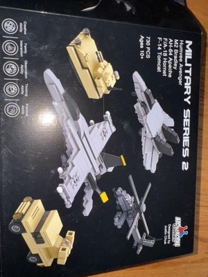 - This 728 piece building block sets comes with FIVE different military vehicles and aircrafts.