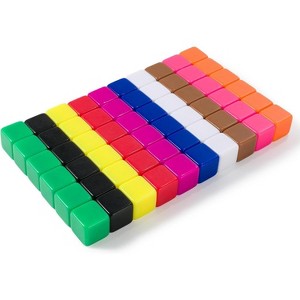 - Includes 100 total wooden cubes: 10 Red, 10 Orange, 10 Yellow, 10 Green, 10 Blue, 10 Purple, 10 Pink, 10 White, 10 Black and 10 Gray pieces.