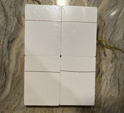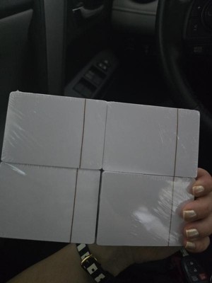 Perfect for creating flashcards and for making up own card games. Each card has a smooth semi-matte finish and is easy to write on. Sharpie glides across the cards’ surface and doesn’t bleed through. The cards are the size and card stock weight of playing cards. I particularly appreciate how the pack has four individually wrapped sets that can be easily opened with a foil strip, which allows 2/3 of the plastic wrap to remain in tact to make removing cards easy and storing unused cards neater.