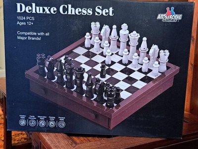 This is a high quality deluxe chess set by Apostrophe that is compatible with all major brands! 1024 pcs to keep you busy building for a bit. It's geared for ages 12 on up. It looks and feels so elegant and well crafted and designed. Great for beginners learning chess play. Also great for cognitive and creative ability skills. Have tons of fun advancing your chess moves and skills with your family and friends!