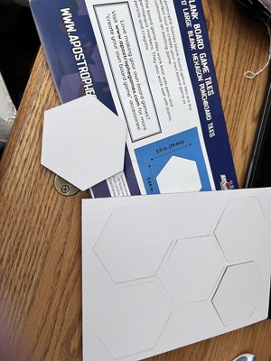 Whether you’re a board game enthusiast who wants to take things to the next level and create their own creative play, or you simply want to expand and create your own hexagon to improve the classics, the Apostrophe Games blank hexagon tiles are the perfect choice! Each hexagon chit measures 3.11" x 3.66" (79mm x 93mm), compatible with Settlers of Catan game tiles.
