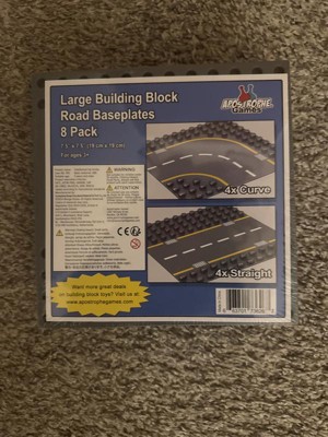 I love these Apostrophe Games Large Building Block Road Baseplates! It comes with 4 curve pieces and 4 straight pieces! An affordable price for a high quality product! I am incredibly impressed! Above and beyond customer satisfaction!