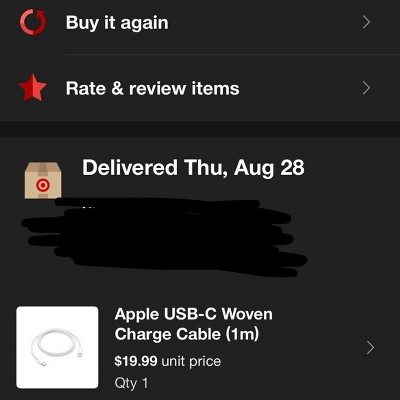 If you need a phone charger quickly then do not order from Target. First was supposed to be here by Thursday, then Friday, then Saturday (currently still shows Saturday) and it is now Sunday and UPS doesn't even have the package yet!!! Literally not one message from Target saying what is going on either! I'm not the person to check every second for when something is coming, but this is something I needed! How are you out of Apple iPhone chargers in September, and if you are, why are you not communicating with me! Atrocious customer service, was trying to avoid ordering through the big-A, but apparently that is what Target wants you to do!