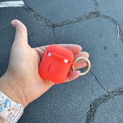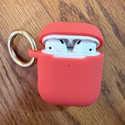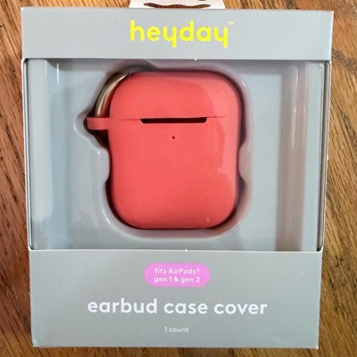 [This review was collected as part of a promotion.] This is a great quality earbud case cover from the brand heyday. This earbud case cover will fit AirPods generation one and generation two. I am loving the peach color of this earbud case. I also love that it is made of easily wipeable silicone so that you can Wipe it off if it gets sturdy. I also really love the matte finish of the gold carabiner clip so that you can clip it on your purse or bag and take it wherever you are going. It is also important to know that this is a wireless charging compatible Case cover. You do not have to take the earbuds out in order to charge them.
