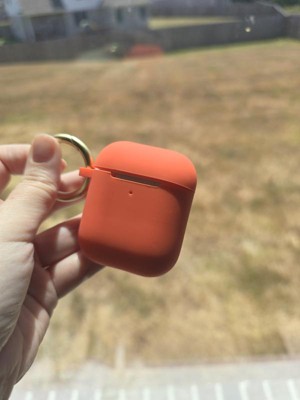 The Apple AirPods (1/2 Generation) Silicone Case with Clip from heyday™ Poppy Orange adds a classy vibe to your accessories. Made from durable material, this case is compatible with wireless charging and includes a flip cover for easy access. The attached carabiner offers convenient portability, allowing you to clip it to bags or belts. Designed specifically for Apple AirPods (2nd generation, 2019) and Apple AirPods (1st generation, 2016), it combines style and functionality in an instant.