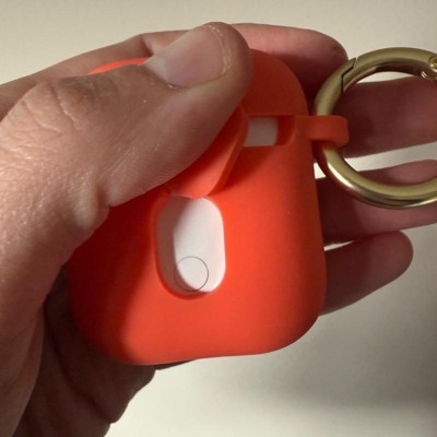 The case fit the Airpod case well and is easy to put on and take off as needed. Silicone is a thick material to help protect the contents inside, clip is convenient to attach them to keys, etc. There is not a locking feature on the case so it wouldn't protect against a loss of product, but does help with damages. Did not seem to work well with a wireless charger but it has a spot to plug them in without having to remove the case. My daughter loves the color - pictures make it a bit more orange than the coral-ish it is, but it's a fun and bright color.