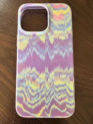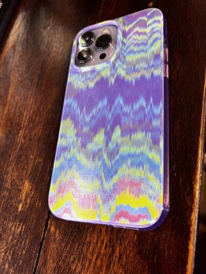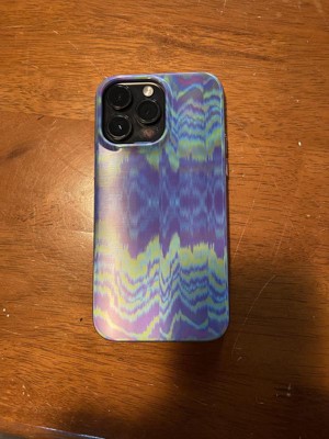 This iPhone Pro Max case is so fun and colorful. The blue, purple, and green tones are relaxing. It does have an iridescent shading and the pattern changes as you move it around. It fits my phone perfectly.
