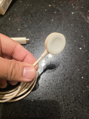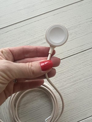 Simple and pretty Apple Watch charger. The aesthetically pleasing cream color is a nice change from basic white. Cord works exactly as expected. This is a great little addition to my guest room for when I have someone who has forgotten their cord.