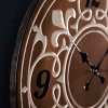 Give your walls stylish flair with this decorative clock. Metal features add a sleek, industrial feel to your living space, while unique fleur-de-lis patterns and elegant numbers decorate the oversized clock face. Perfect above an entryway console or in your home office, this round clock beautifully blends functional design and rustic style. Make the most of your wall decor with this hanging clock.