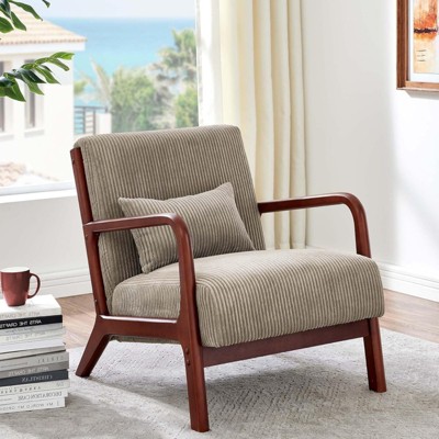 APRILSOUL 32.25"Scandinavian Solid Wood Lounge Chair Ribbed Corduroy Armchair with Lumbar Support,White