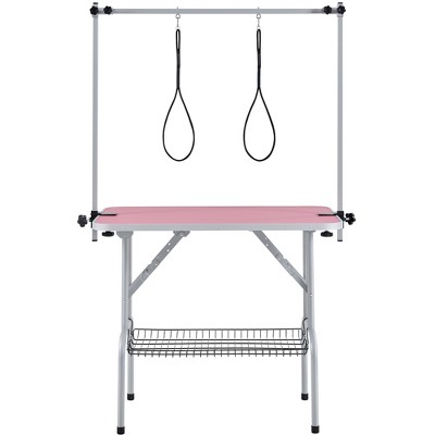 APRILSOUL 36"Folding Dog Grooming Table: Stainless Steel Frame, Rubber Mat, Adjustable Arm & Clamps ¨C For Dogs & Cats