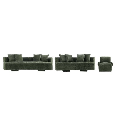 APRILSOUL Green 2 Pieces Chenille Sofa and Chair Set, 1+2 Seat, Loveseat and Accent Chair, High-Quality Sponge, Flexible Configurations