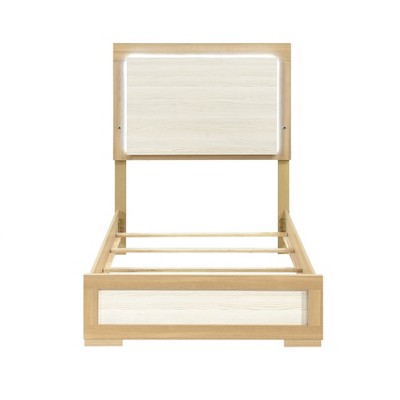 - Crafted with premium metal and wood, this twin bed frame combines elegance and durability. Featuring heavy-duty support legs equipped with protective plastic plugs, it safeguards your flooring while providing exceptional stability. Engineered to withstand up to 800 pounds, it ensures long-lasting strength and reliability for years to come.
