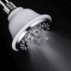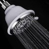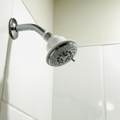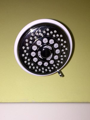 High-powered showerhead with a large 4" chrome face and 5 function settings. Designed with a 2-tone white/chrome finish. The rub-clean nozzles keep the showerhead operating at peak performance for many years to come. One of the many settings includes a water-saving mode. Enjoy the flexibility of the angle-adjustable mounting bracket. The two-tone finish adds a luxurious look to any shower setting. The high-end spiral design is unique from any other showerhead in the industry. Includes the showerhead & installation hardware and a Limited Lifetime Warranty.