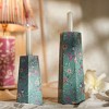 - Fresh Aqua & Yellow Floral Enamel Finish: This taper candleholder showcases a delicate enamel print with aqua and yellow floral detailing that instantly brightens any tabletop, shelf, or mantle. Its cheerful tones and nature-inspired pattern bring warmth and charm to your home décor