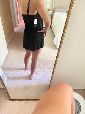 [This review was collected as part of a promotion.] Genuinely love this! I was worried it’d be too big but the fit is so comfortable and flattering! From a distance, it just looks like a black romper. Love that it’s suitable to wear outside whether I’m sun tanning or walking the dog. It’s not too short either. I’m a C chest and feel secure on top. Straps are adjustable in the back. Can’t wait to wear this all summer at camp!