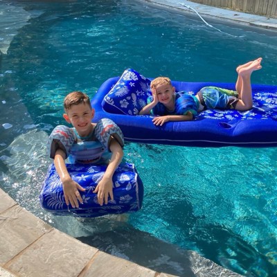 [This review was collected as part of a promotion.] A nice product. Fairly easy to assemble, but make sure you have a good air pump, there’s no chance of blowing this up manually without passing out. Comfortable for the kids, and the bolster is nice to float on, but I do wish that the covers were removable. I feel like they’re going to get filthy and degrade faster than the actual float inside.