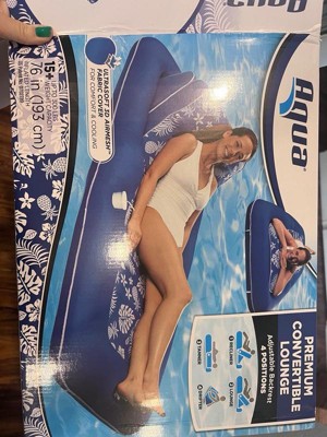 [This review was collected as part of a promotion.] This convertible lounger is definitely the Mac daddy of floating loungers! It is much more durable than the previous smaller versions I had. Only reason for the one missing star is that it’s a little cumbersome to get on - I would have to stand on the top step and jump onto lounger. Once on the lounger you don’t dip into the water at all - so if you like to relax in the pool with your bottom in the water this will be too much for you. But if you like to lounge and stay high afloat in the pool this is most definitely for you. My husband loves this float and the different positions to lounge in- his favorite of all that we have ever owned!