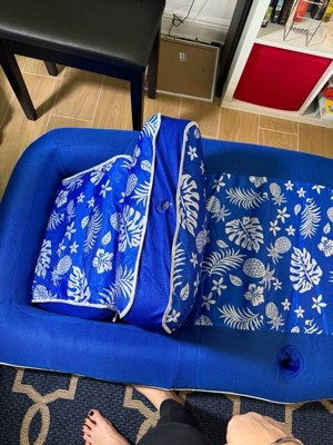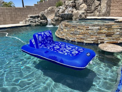 [This review was collected as part of a promotion.] This is multi functional lounger for different lounging positions. Removable bolster gives you lots of flexibility. Very quick to inflate. Material stays cool with sun beating down. Very heavy carrying capacity. Fabric is soft in nature. Royal Blue color looks great in the pool. Overall, great lounger to our pool.