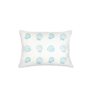 Aqua Saltwater Shell Printed Linen Pillow 14x20