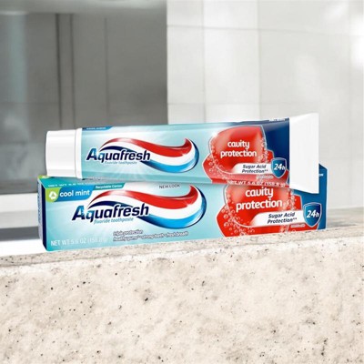 - Aquafresh Cavity Protection Toothpaste delivers fluoride-based cavity defense, strengthening enamel, fighting plaque, and helping prevent cavities to support long-term oral health and maintain a strong, healthy, and confident smile for adults and children alike.