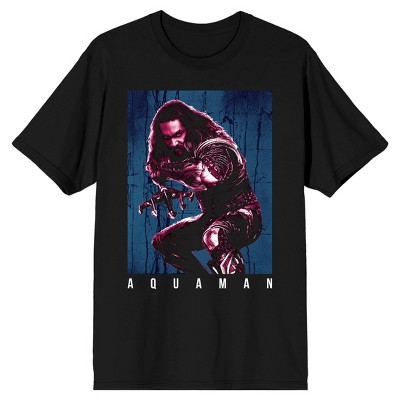 • GRAPHIC TEE: A blue poster shows Aquaman, Mera, the Ocean Master, and some robots underwater while red and blue text spells out, "Aquaman, unite the kingdoms." This t-shirt makes a great gift for fans of the Aquaman films.