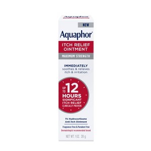 Aquaphor Itch Relief Ointment immediately soothes and relieves itch and irritation from skin irritation, insect bites, psoriasis, skin rashes, eczema and poison ivy. Clinically proven to deliver up to 12 hours of significant itch relief. Gentle on irritated and inflamed skin with maximum strength 1% hydrocortisone anti-itch ointment. Fragrance free and paraben free. Dermatologist-recommended brand.