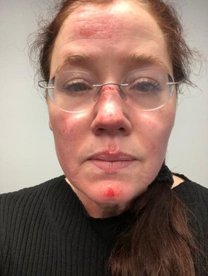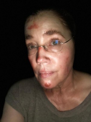 I don't know if this Aquaphor labeled "Soothes minor wounds, cuts, scrapes + burns" is actually any different than the "Ointment for Dry, Cracked or Irritated Skin." I have a big tube of the latter, but I had a half used 1.75oz. tube of the former, and I recently did a face plant on a concrete sidewalk during 40 degree weather, blustery winds and driving sideways rain. I was running to get out of that weather and lost control, flew into the air, my Contigo coffee mug disappeared into thin air, and I came down on my FACE, and slid along the concrete. Destroyed my eyeglasses, took three layers of nose off, injured my upper lip, chin and forehead, and came up bleeding. I didn't treat it right away (ah, was in shock), but after about 36 hours I went to Google and all the dermatologists advise treating injuries like I suffered with petroleum jelly. By the time I started using my Aquaphor, soft scabs were forming. The Aquaphor dissolved them, and even got rid of a deep embedded scab on my outer right knuckle which also was damaged during this same fall. I looked online for more of the "Soothes minor wounds, cuts, scrapes + burns" version, and finally found it on Target. All these photos are no makeup. Just mascara. No foundation or concealer. In the white/gray strip top, that's today, about 8 days of Aquaphor. The middle photo is right after the fall. The last photo, well, that's almost two days after the fall, when I went to Google in desperation. How can I fix my face??? I will never be without this version of Aquaphor ever again.