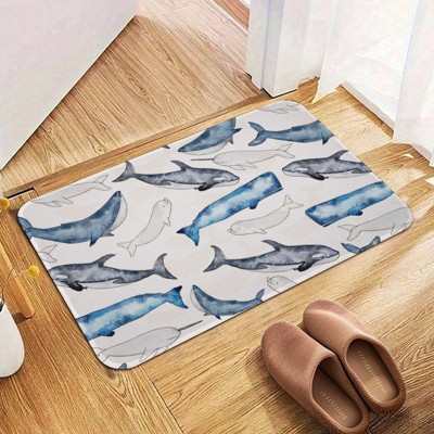 Aquarelle Whales Bathroom Rugs Winter Bath Mat Absorbent Non Slip Bathroom Mat Christmas Soft Floor Carpet 16x20 Inches - 1 of 1
