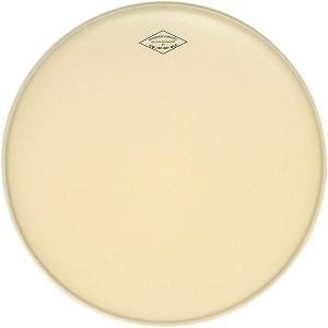The Modern Vintage single ply, 10mil, medium-weight drumhead, features a special coating that has the look, feel and warm sound of a calfskin head. The coating is slightly thicker and helps slow the vibration of the head, which results in a lower, warmer tone with a softer feel and a classic vintage look. These full range tom and snare drum heads and are suitable for any musical setting where warm tone and full resonance are welcome. These medium weight heads are perfect for either Batter and Resonant heads.