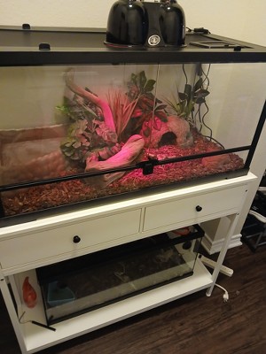Aquarium Stand 40 Gallon White with Power Outlet, Metal Frame Fish Tank Stand with Storage Drawers, Double Turtle Reptile Terrariums Tank Stands